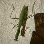 夜、塀にどこからかカマキリがやってきていた。昼はいなかったので、大葉の茂みにかくれているのだろうか。
