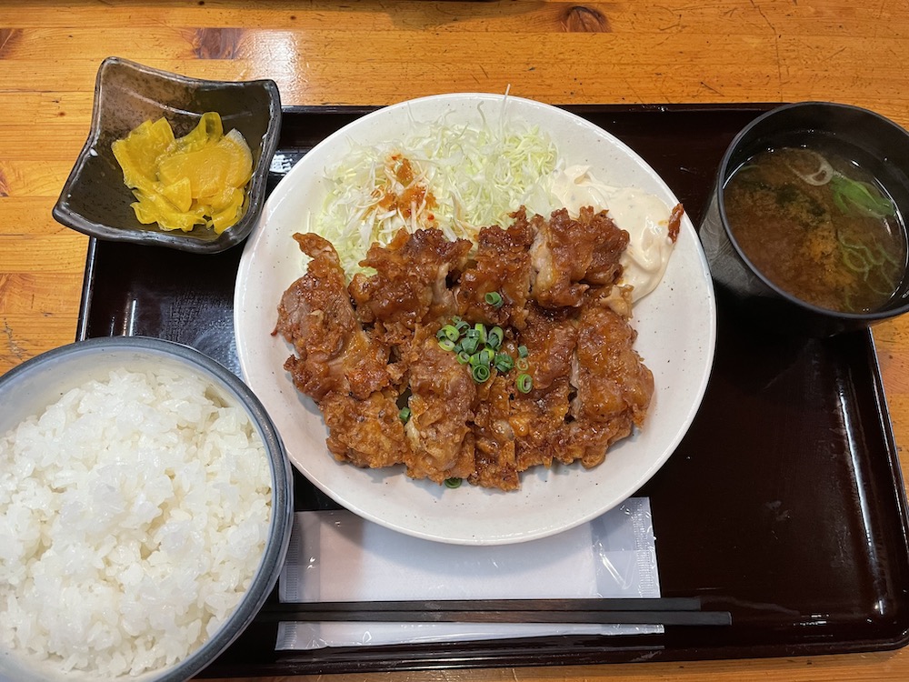 注文したのは、いつもどおりの漬け鶏南蛮定食。量も値段も申し分なし。PayPayのポイントバックキャンペーンもあるので、混むわけだ。