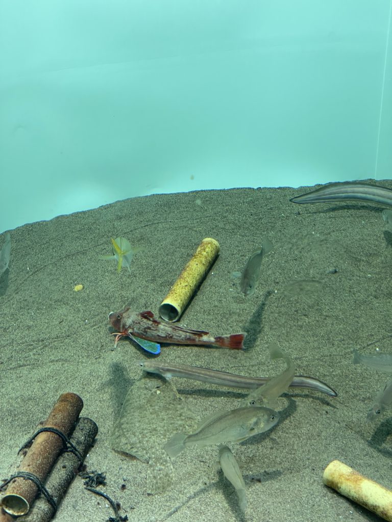 小さなウミガメがかわいい。黒板アートがすごかった。餌の時間なのかホウボウは動き回り、穴子は穴から出てきていた。まぁ、たのしかった。