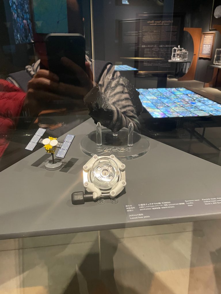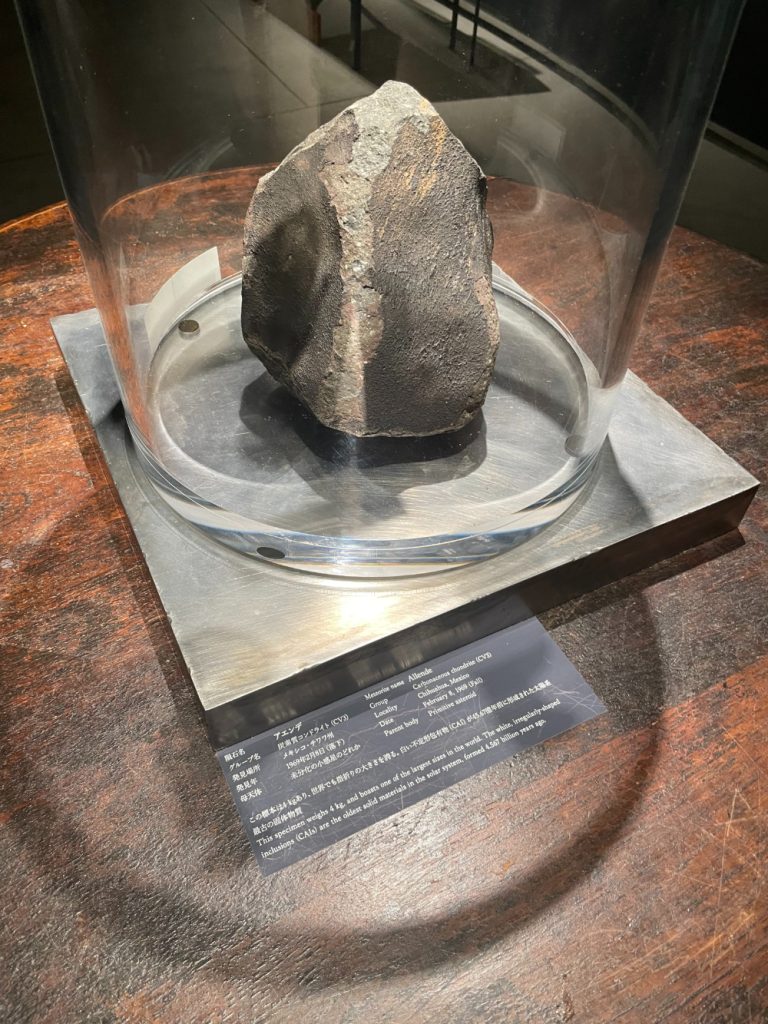 いろいろな隕石もあるし、大きなものもある。南極で隕石が発見しやすいとか、楽しく見れた。小惑星リュウグウの砂の標本も展示されていてよかった。これが並ばずに、のんびりと見ることができるのだから、とてもいい。この砂が、宇宙を旅してきて日本にあるのだからと考えるとすごいこと。はやぶさ2探査機の帰還から5年以上も経っているのも驚き。時がすぎるのは早い。