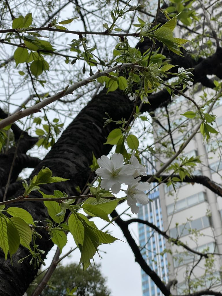 オフィスの前のオオシマザクラが咲き始めていた。