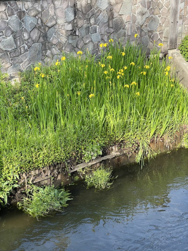 今年も真間川の黄菖蒲(キショウブ)が見頃の季節になった。群生しているところが多く、黄色い花がきれいだ。
