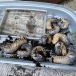 まだ、カブトムシのオスは生きているけれど、幼虫の状態確認と、クヌギマットの交換をやった。大きいカブトムシ幼虫から小さい幼虫...